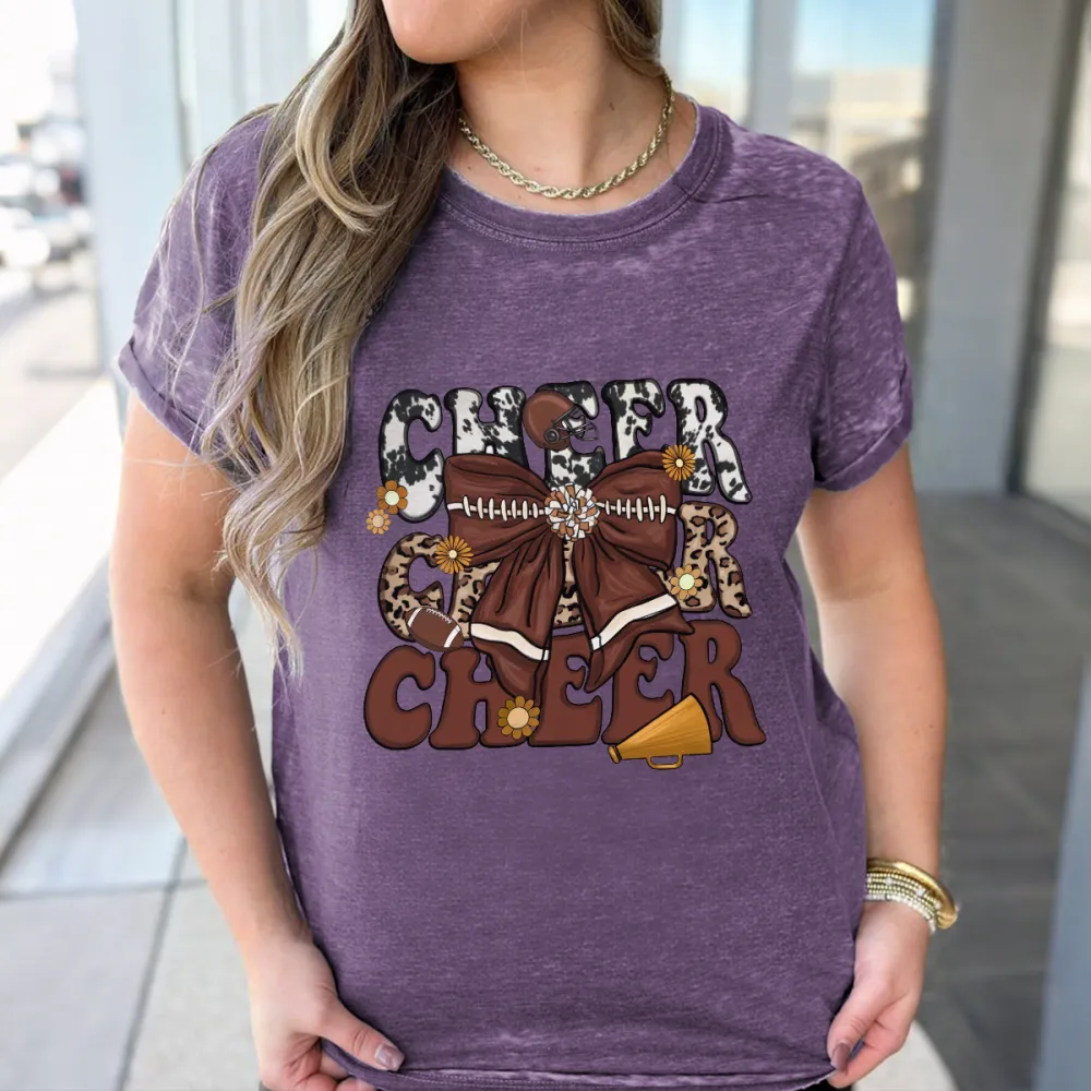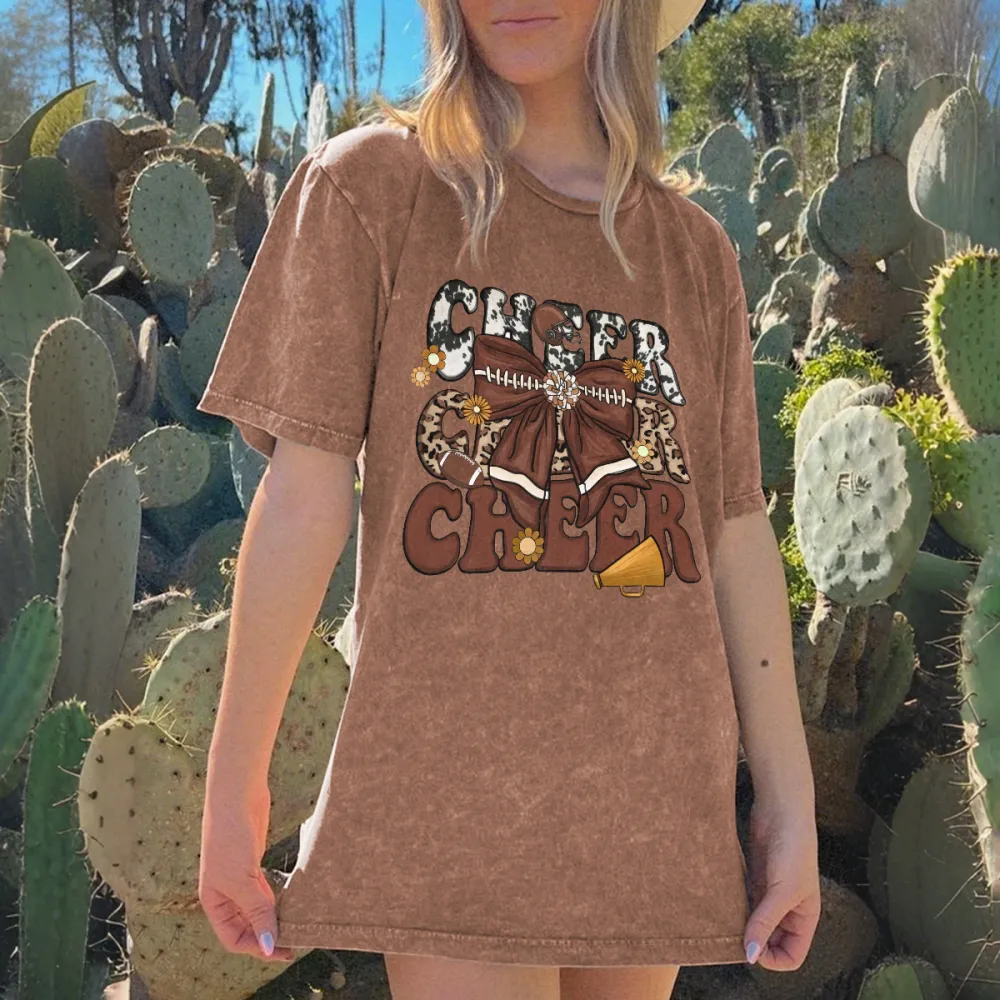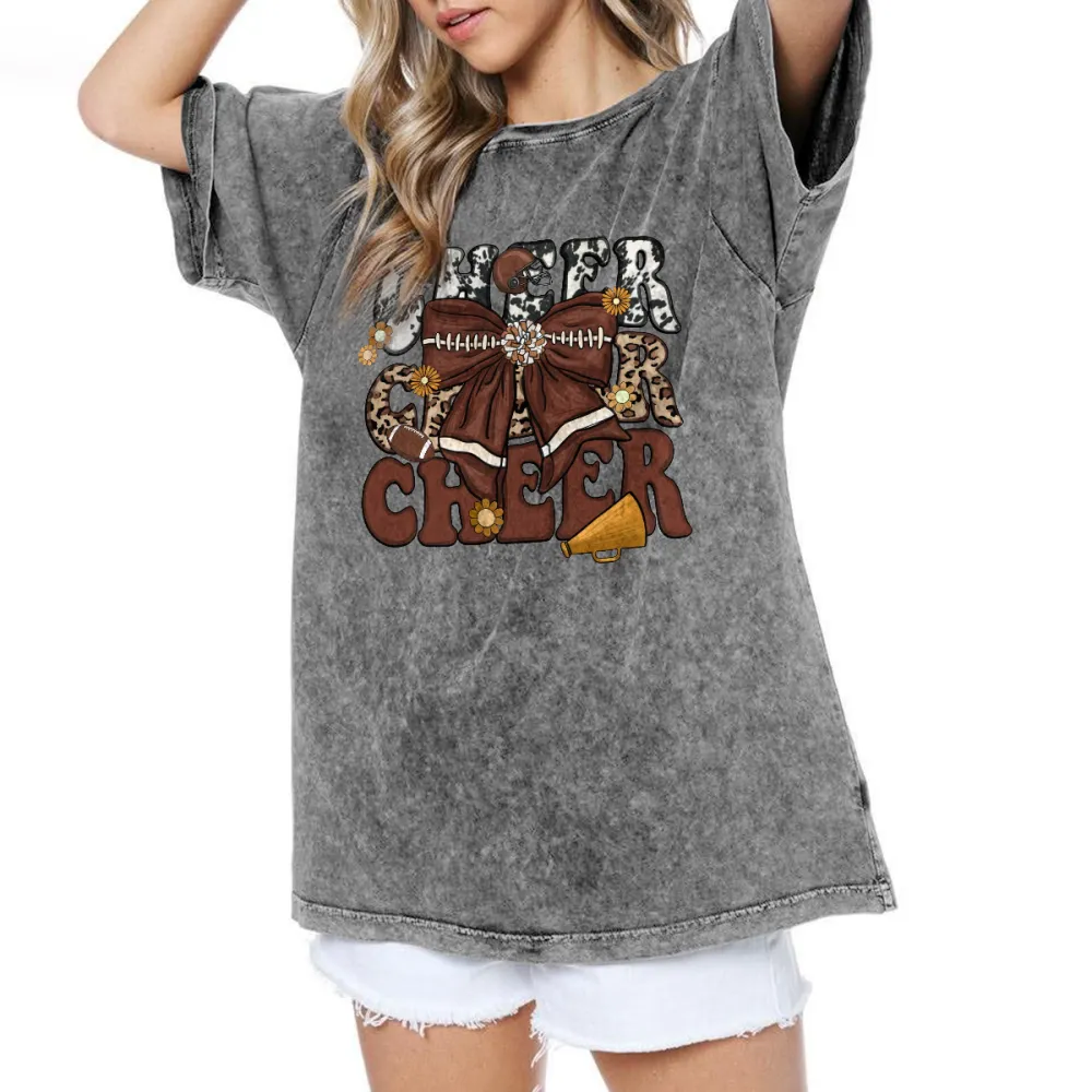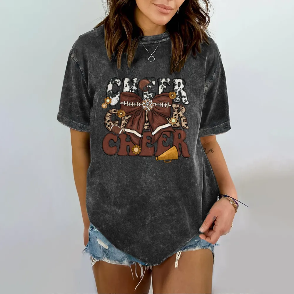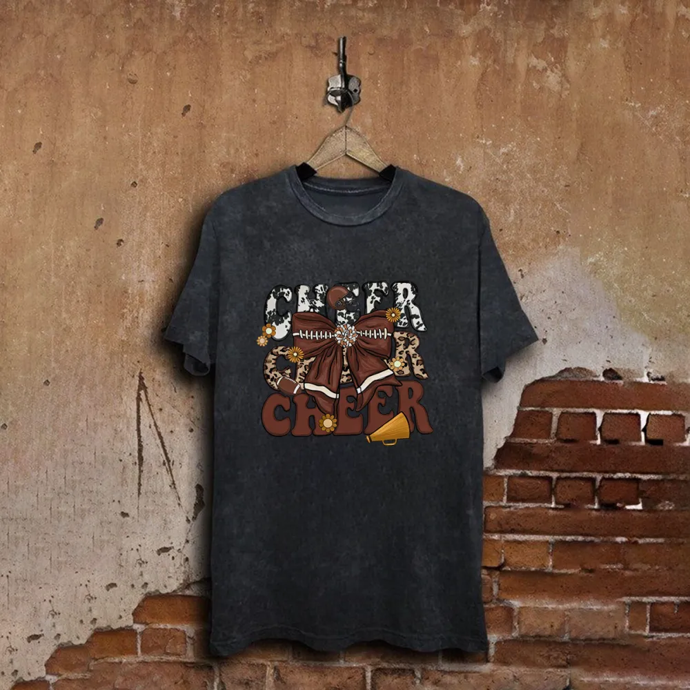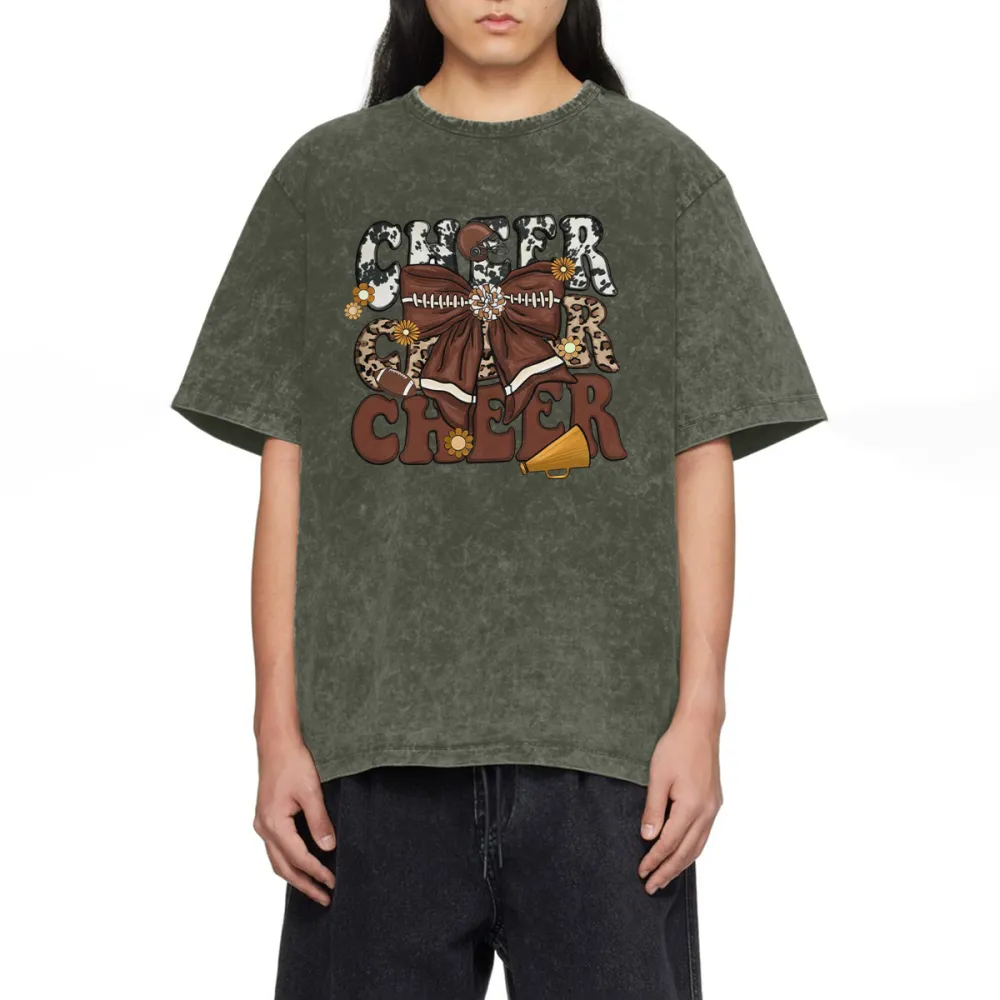 "Football Cheer" "Football" Is Presented In A Distressed Style, With "Cheer" Flower Balls, Loudspeakers, American Footballs, Casual T-Shirts, And Washed Cotton Fried Snowflake Loose T-Shirts.
