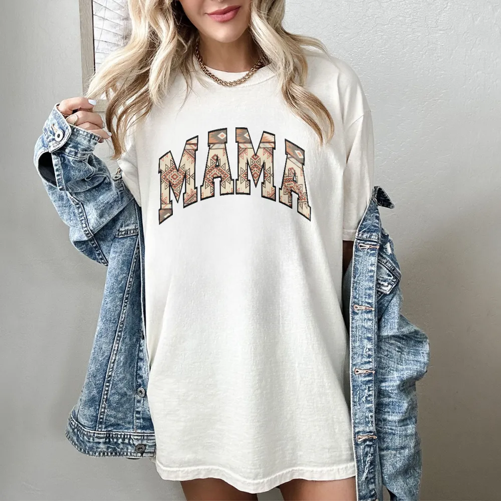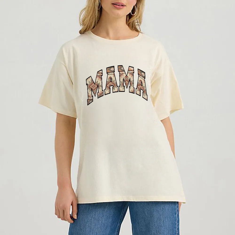 "Mama", The Slogan Uses A Retro Pattern Design With Old Paper Texture, Casual T-Shirt.