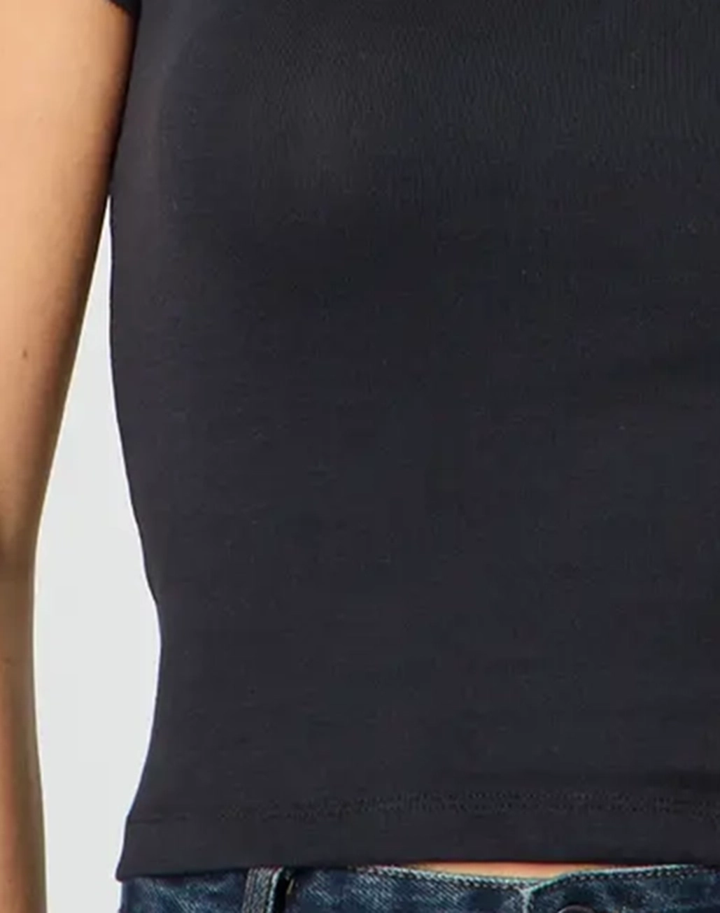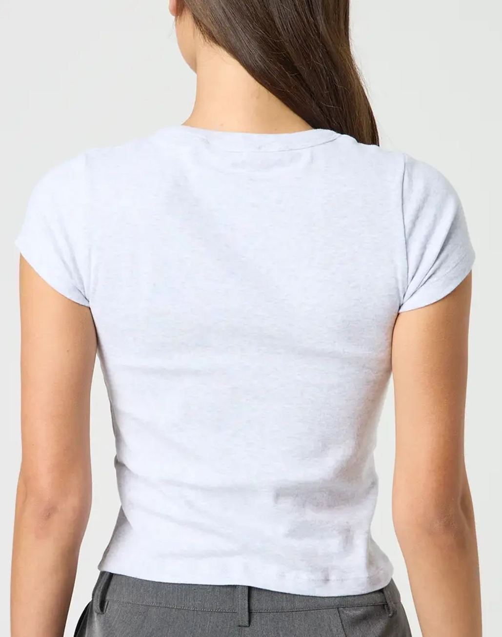 This top is a neccessary basic with a crew neckline and fitted baby tee style.