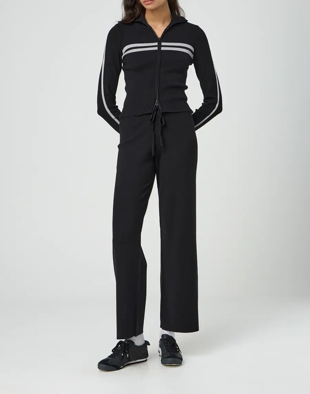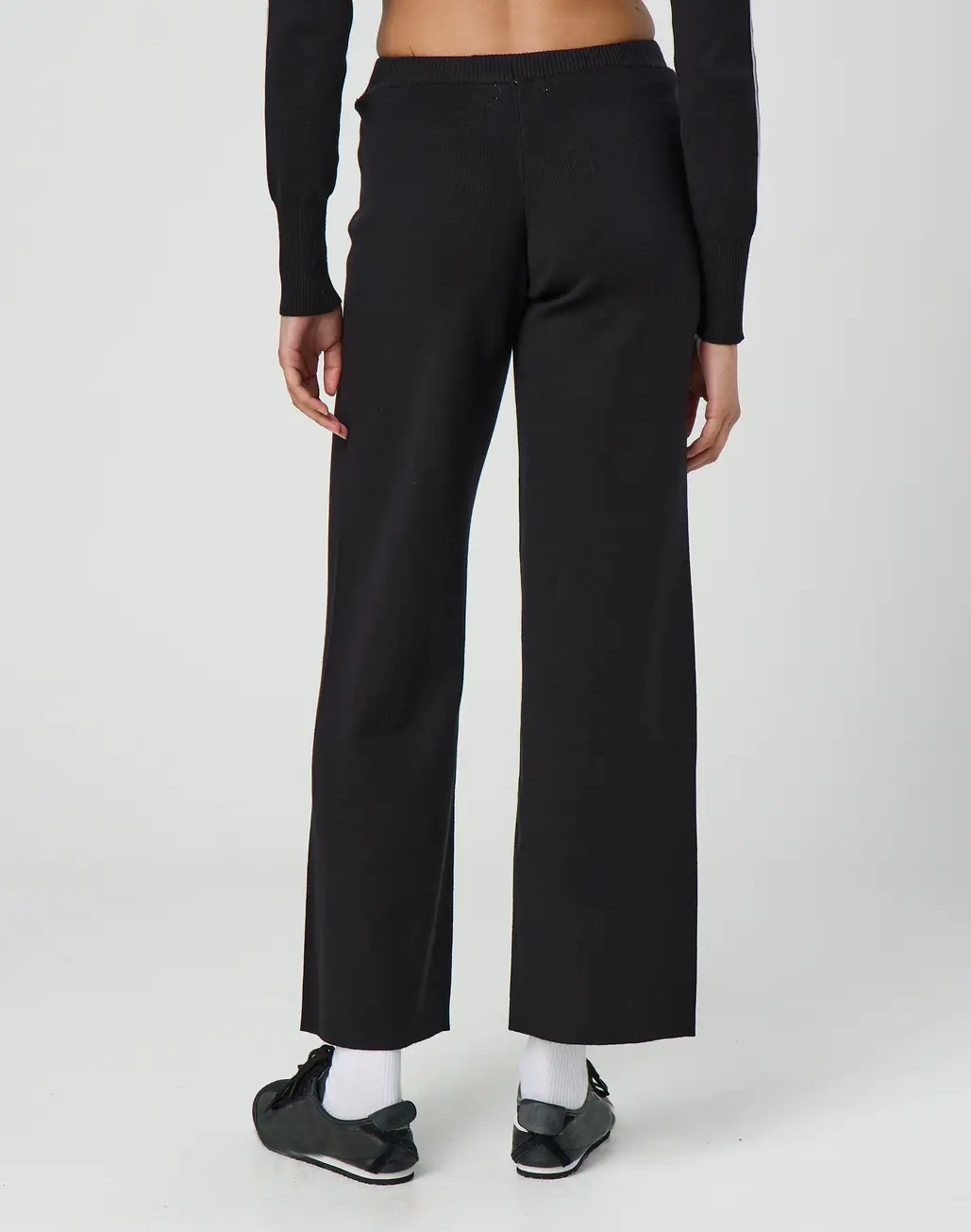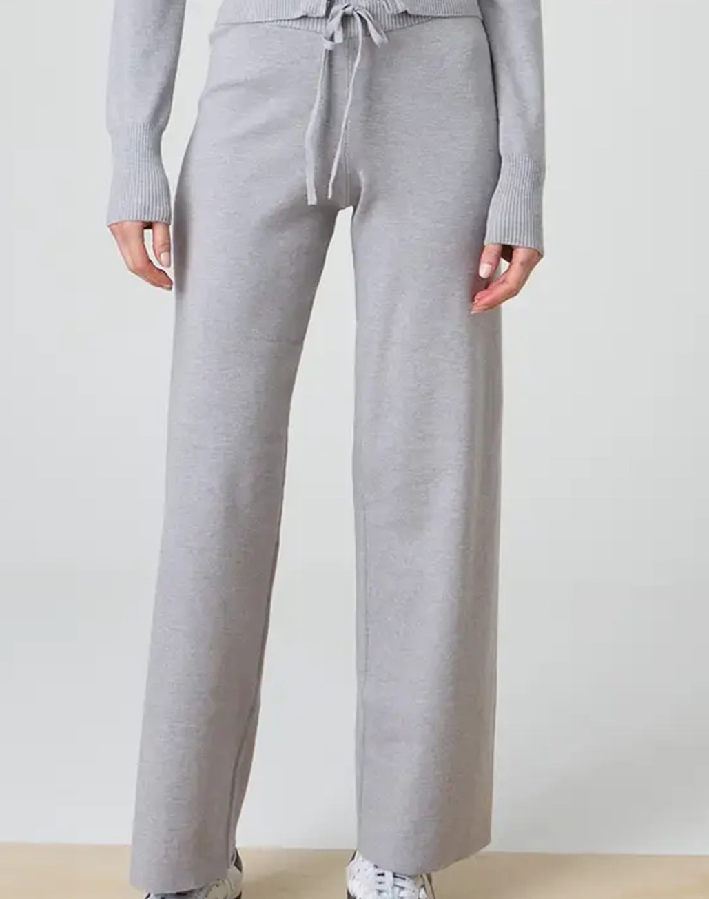 These knit pants feature a relaxed straight leg style, a mid waist fit and a drawstring.