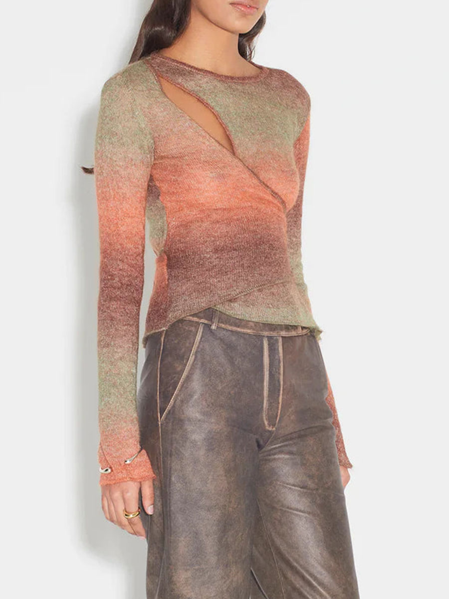 The Knit is a gorgeous take on a regular knit. Knitted in a rich red gradient colour way, it features a wrap around body with a cut out detail. The is fitted around the body and is crafted from