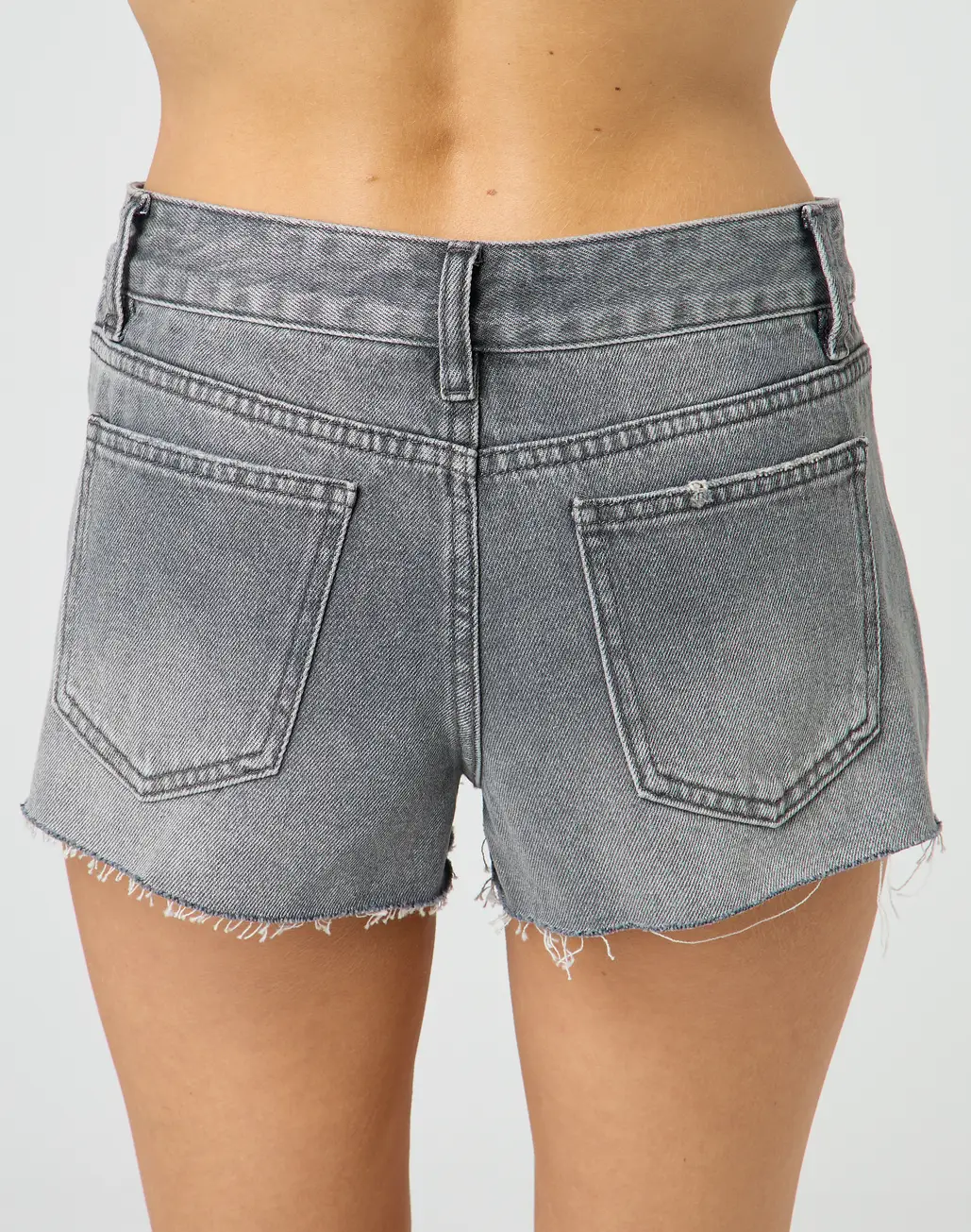 These mini denim shorts feature a mid rise fit, pockets and belt loops.