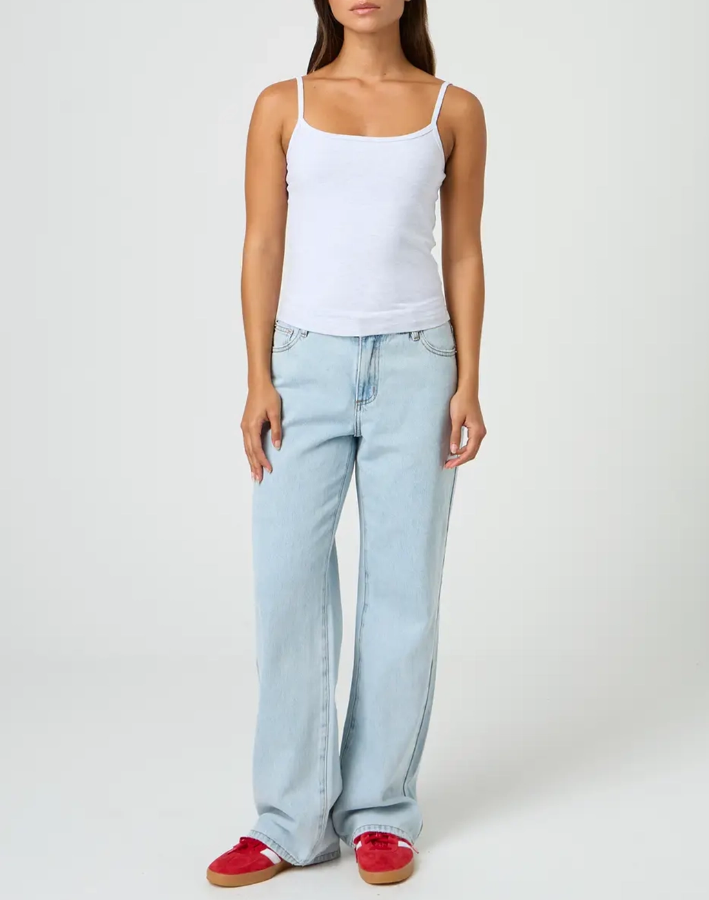This printed tank top features thin spagetti straps and longline length - the perfect top to style with jorts!
