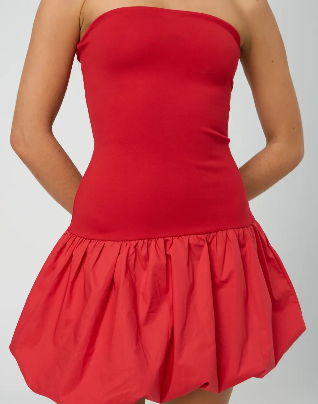A strapless bubble hem mini dress, this dress is super on trend perfect with a pair of ballet flats or kitten heels for your next date night!