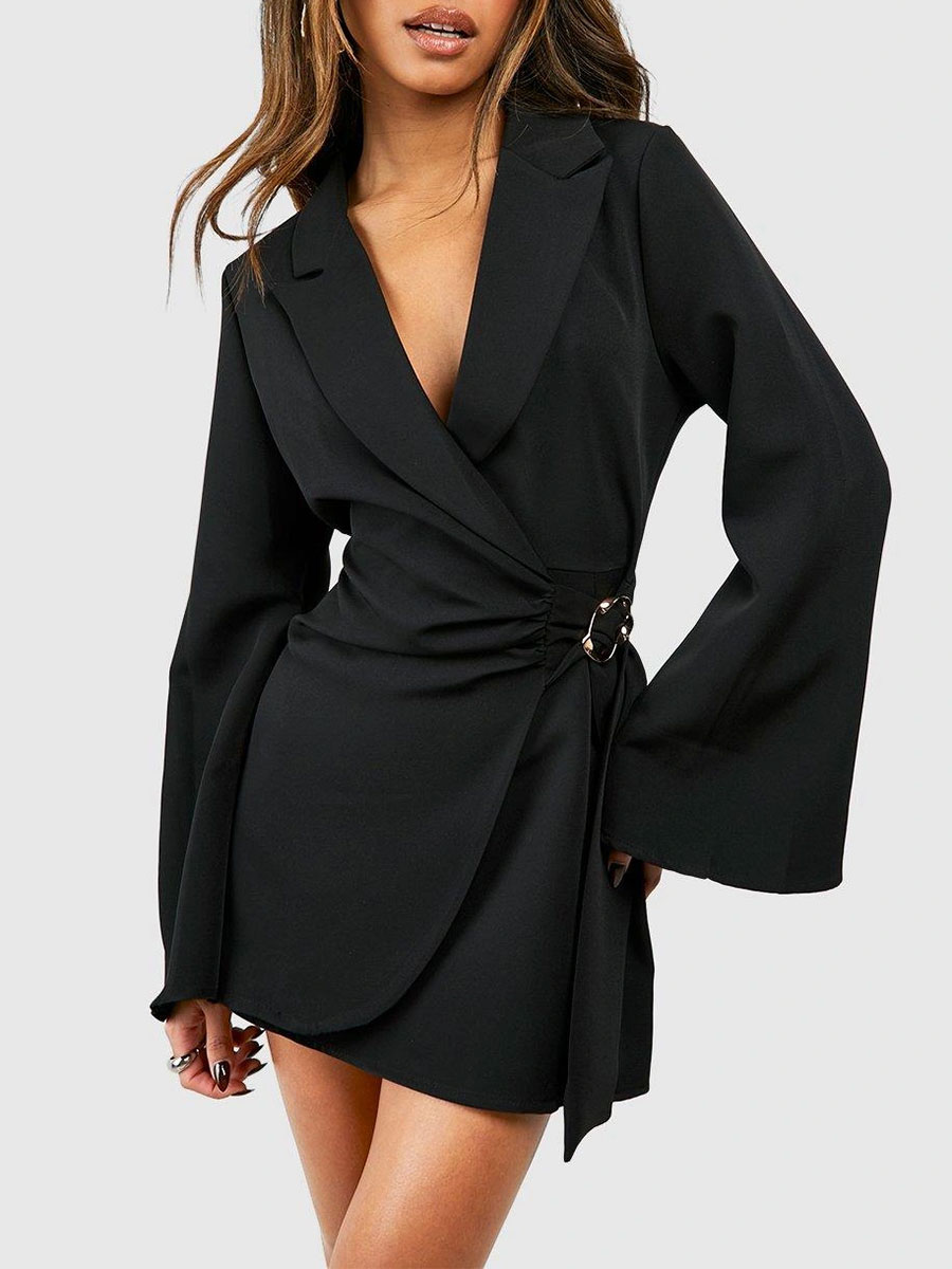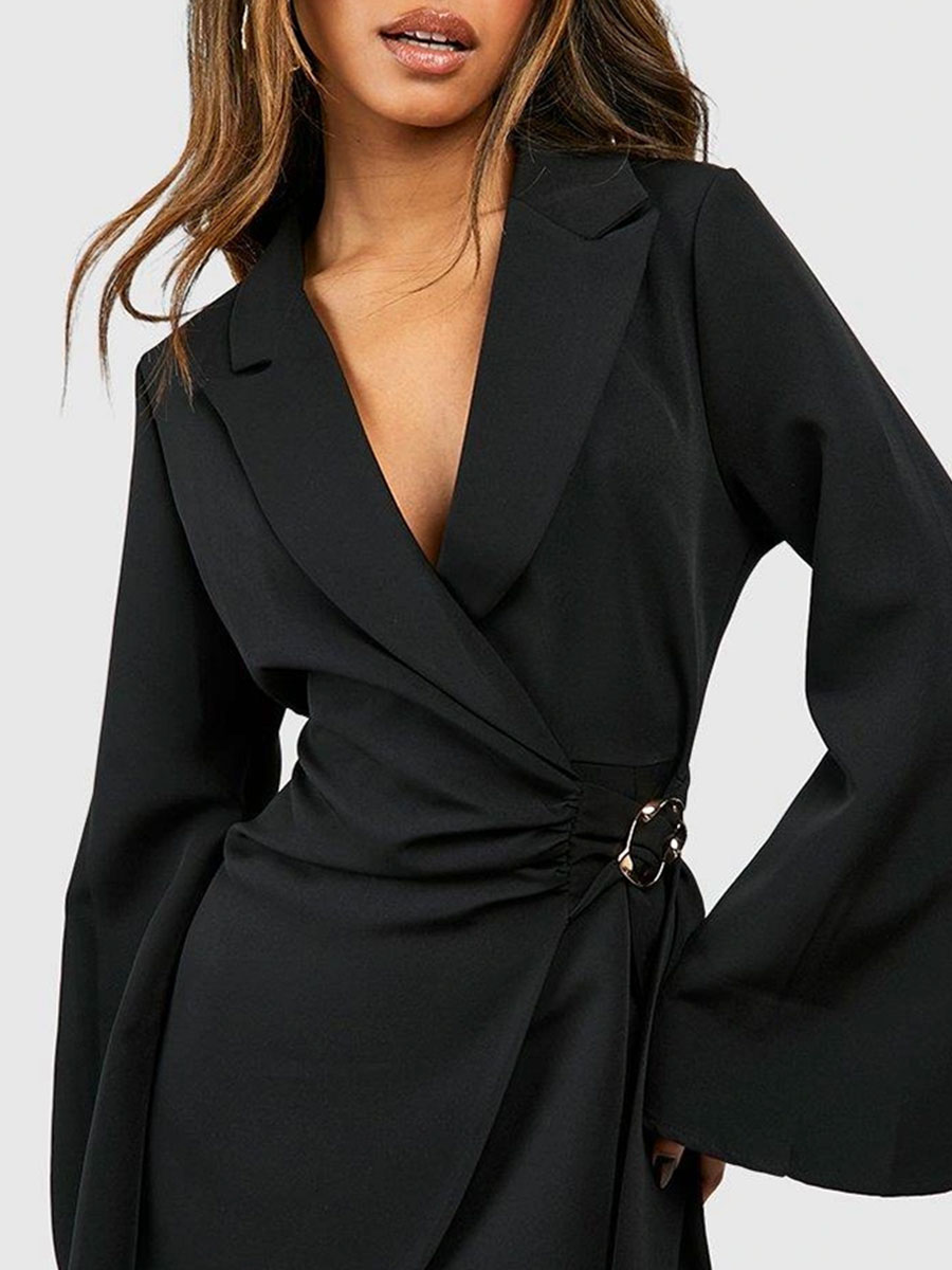 - Tailored blazer dress with chic buckle detail